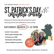 Get ready to celebrate St. Patrick’s Day, rooftop-style! Join us at The Good Pour Winter Park for an afternoon of Irish-inspired fun, featuring live music, traditional Irish dancers and festive drinks on our rooftop space.