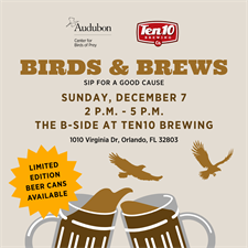 The folks at Ten 10 Brewing have created a limited edition beer in honor of Billie Owlish, a one-eyed Eastern Screech-Owl that lives at the Audubon Center for Birds of Prey. Join us to snag your own can of “Billie’s Screechy Stout” (while supplies last), meet Billie herself, and learn more about the Center for Birds of Prey and how it rehabilitates more than 700 raptors each year. A portion of sales from Billie’s Screechy Stout benefits the Audubon Center for Birds of Prey.