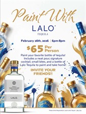 Includes a neat pour, signature cocktail, small bites, and a bottle of Lalo Tequila to paint and take home!